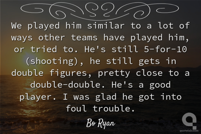 We played him similar to a lot of ways other teams have played him, or tried to. He's still 5-for-10 (shooting), he still gets in double figures, pretty close to a double-double. He's a good player. I was glad he got into foul trouble.