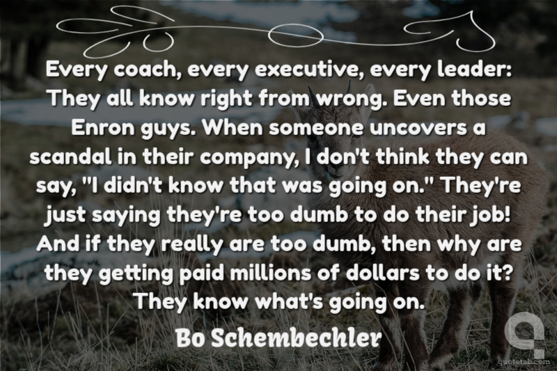 Every coach, every executive, every leader: They all know right from wrong. Even those Enron guys. When someone uncovers a scandal in their company, I don't think they can say, "I didn't know that was going on." They're just saying they're too dumb to do their job! And if they really are too dumb, then why are they getting paid millions of dollars to do it? They know what's going on.
