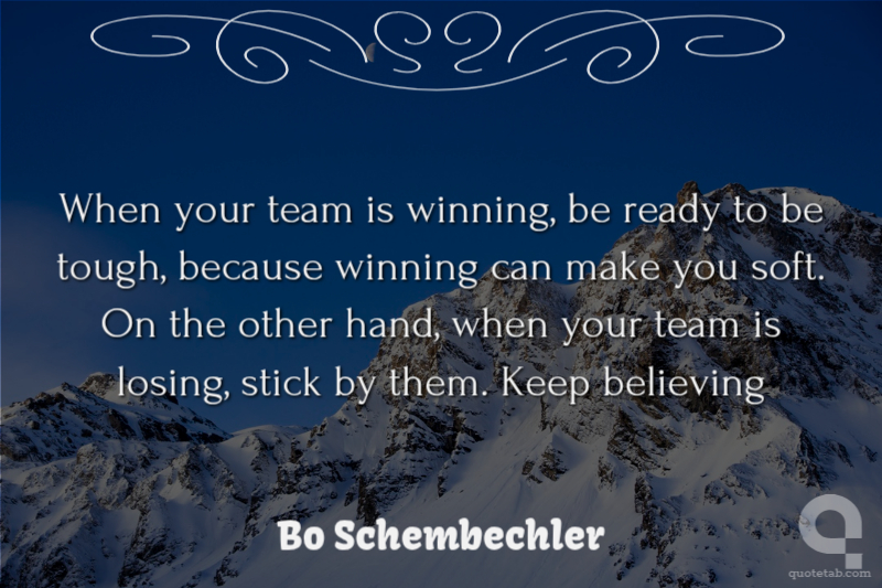 When your team is winning, be ready to be tough, because winning can make you soft. On the other hand, when your team is losing, stick by them. Keep believing