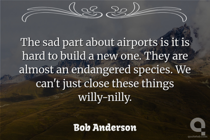The sad part about airports is it is hard to build a new one, ... They are almost an endangered species. We can't just close these things willy-nilly.