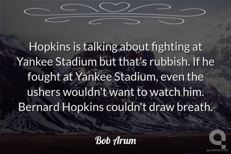 Hopkins is talking about fighting at Yankee Stadium but that's rubbish. If he fought at Yankee Stadium, even the ushers wouldn't want to watch him. Bernard Hopkins couldn't draw breath.