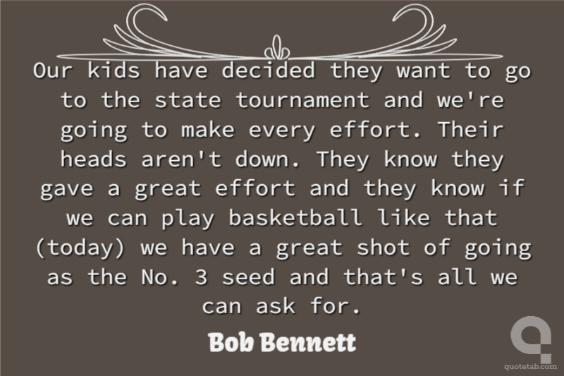 Our kids have decided they want to go to the state tournament and we're going to make every effort. Their heads aren't down. They know they gave a great effort and they know if we can play basketball like that (today) we have a great shot of going as the No. 3 seed and that's all we can ask for.