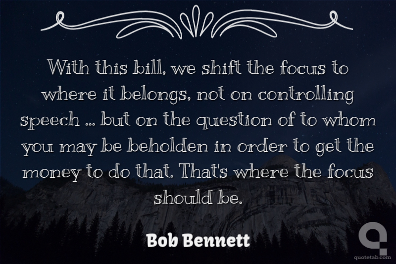 With this bill, we shift the focus to where it belongs, not on controlling speech ... but on the question of to whom you may be beholden in order to get the money to do that. That's where the focus should be.