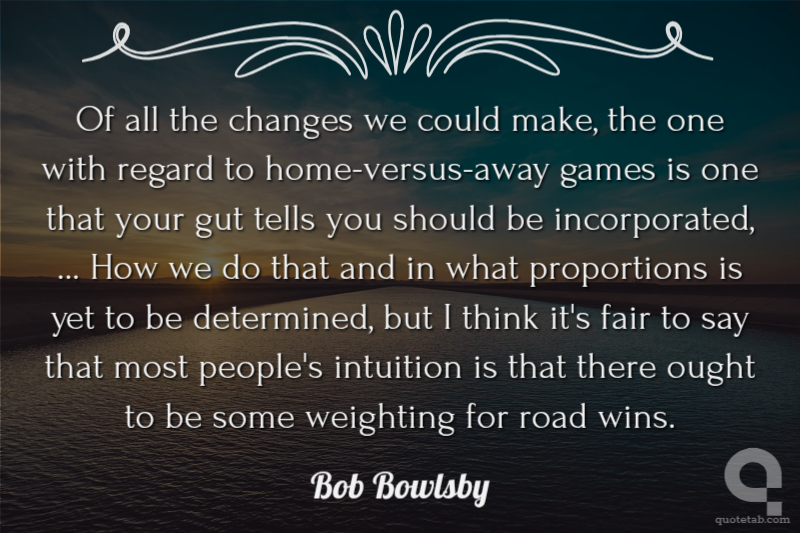 Of all the changes we could make, the one with regard to home-versus-away games is one that your gut tells you should be incorporated, ... How we do that and in what proportions is yet to be determined, but I think it's fair to say that most people's intuition is that there ought to be some weighting for road wins.