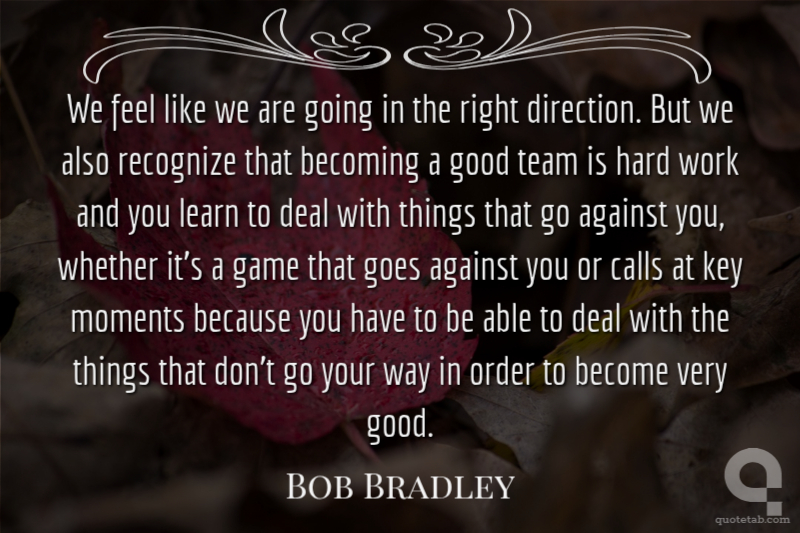 We feel like we are going in the right direction. But we also recognize that becoming a good team is hard work and you learn to deal with things that go against you, whether it's a game that goes against you or calls at key moments because you have to be able to deal with the things that don't go your way in order to become very good.