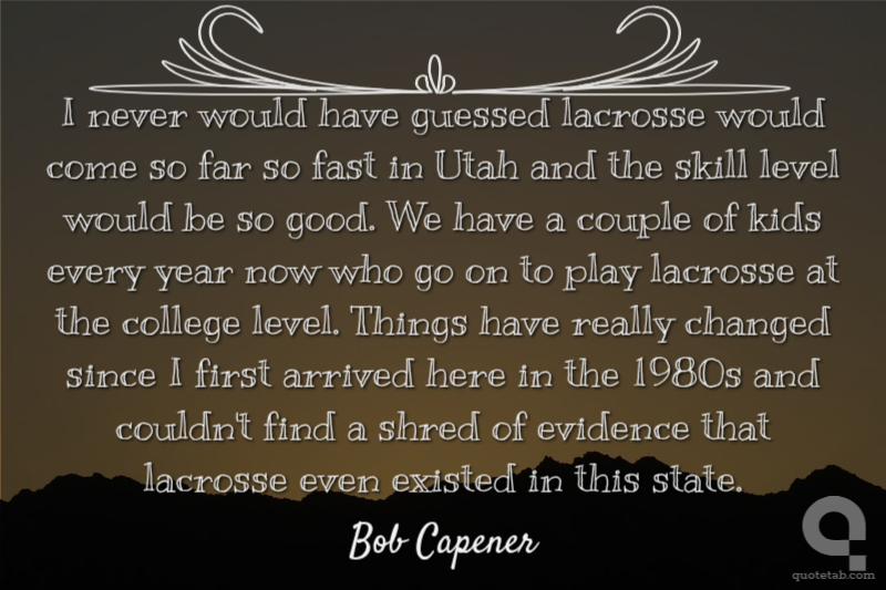 I never would have guessed lacrosse would come so far so fast in Utah and the skill level would be so good. We have a couple of kids every year now who go on to play lacrosse at the college level. Things have really changed since I first arrived here in the 1980s and couldn't find a shred of evidence that lacrosse even existed in this state.
