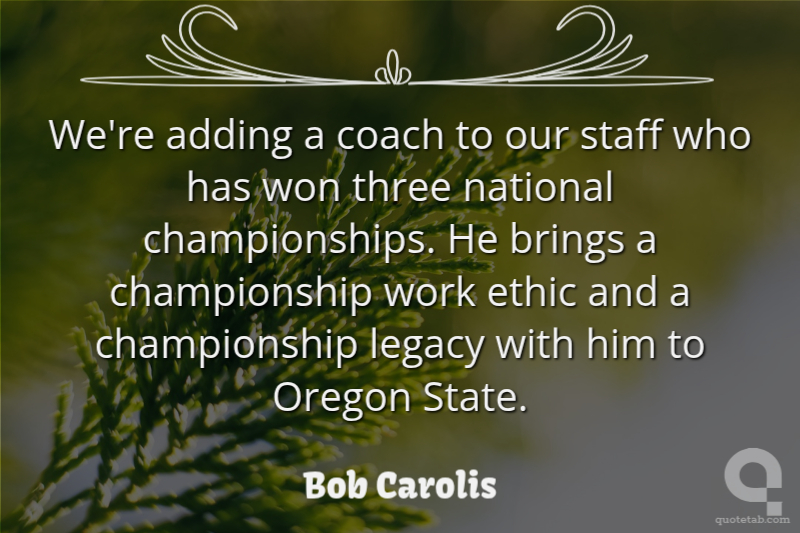 We're adding a coach to our staff who has won three national championships. He brings a championship work ethic and a championship legacy with him to Oregon State.