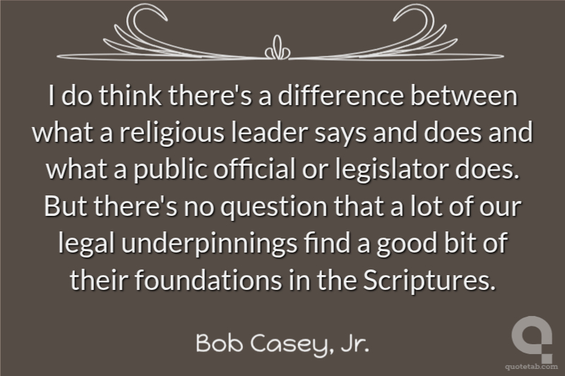 I do think there's a difference between what a religious leader says and does and what a public official or legislator does. But there's no question that a lot of our legal underpinnings find a good bit of their foundations in the Scriptures.