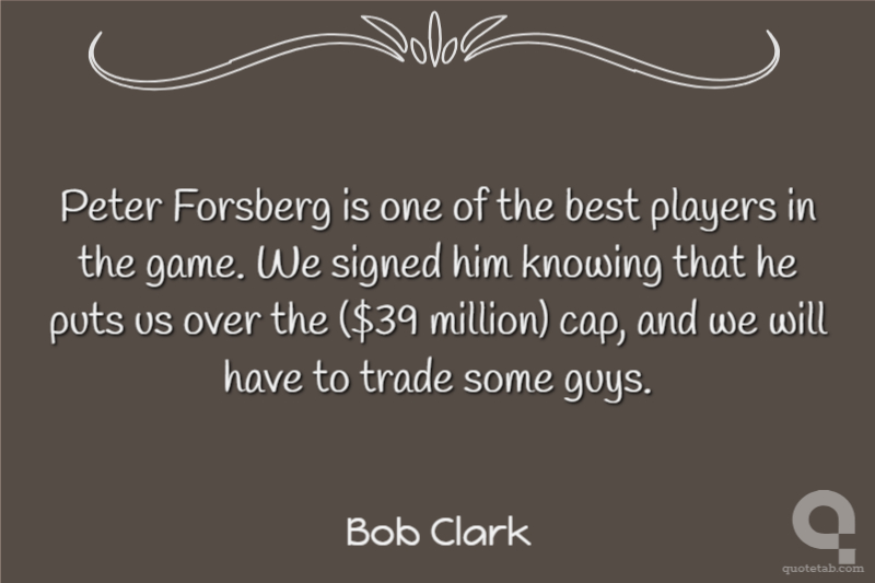 Peter Forsberg is one of the best players in the game. We signed him knowing that he puts us over the ($39 million) cap, and we will have to trade some guys.