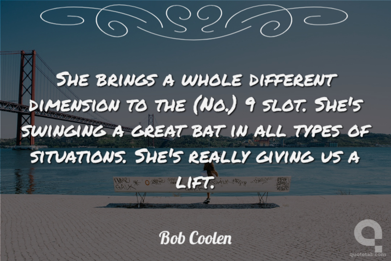 She brings a whole different dimension to the (No.) 9 slot. She's swinging a great bat in all types of situations. She's really giving us a lift.