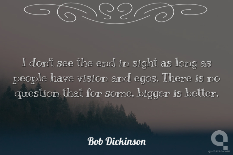 I don't see the end in sight as long as people have vision and egos. There is no question that for some, bigger is better.