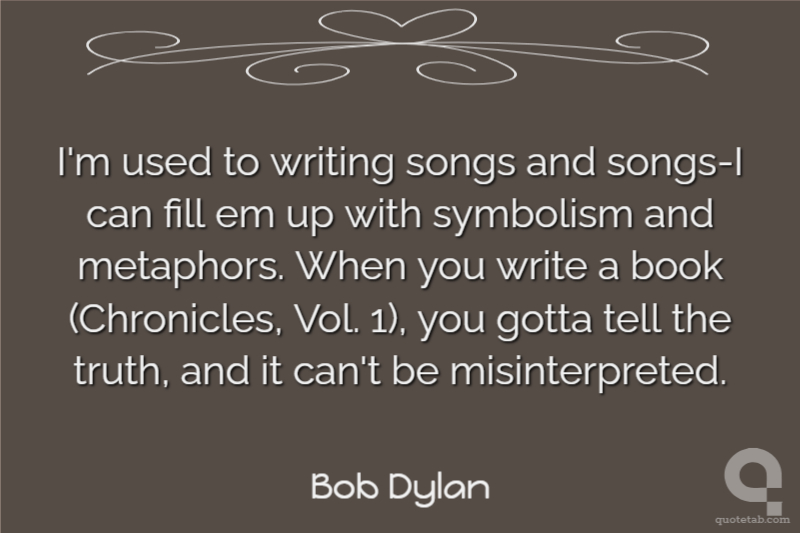 I'm used to writing songs and songs-I can fill em up with symbolism and metaphors. When you write a book (Chronicles, Vol. 1), you gotta tell the truth, and it can't be misinterpreted.