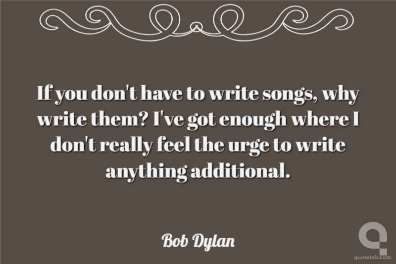 If you don't have to write songs, why write them? I've got enough where I don't really feel the urge to write anything additional.