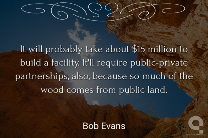 It will probably take about $15 million to build a facility. It'll require public-private partnerships, also, because so much of the wood comes from public land.