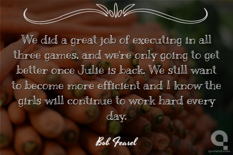 We did a great job of executing in all three games, and we're only going to get better once Julie is back. We still want to become more efficient and I know the girls will continue to work hard every day.