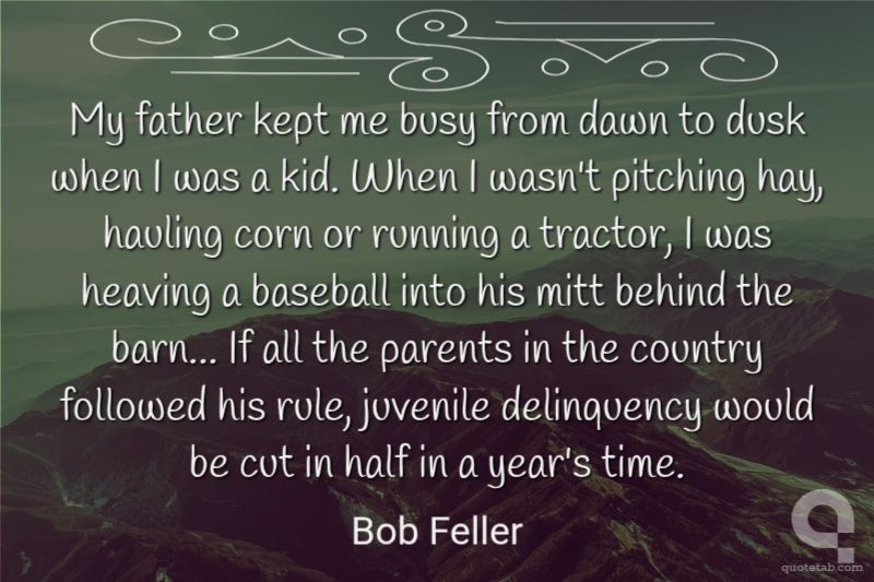 My father kept me busy from dawn to dusk when I was a kid. When I wasn't pitching hay, hauling corn or running a tractor, I was heaving a baseball into his mitt behind the barn... If all the parents in the country followed his rule, juvenile delinquency would be cut in half in a year's time.