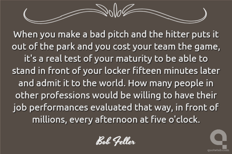 When you make a bad pitch and the hitter puts it out of the park and you cost your team the game, it's a real test of your maturity to be able to stand in front of your locker fifteen minutes later and admit it to the world. How many people in other professions would be willing to have their job performances evaluated that way, in front of millions, every afternoon at five o'clock.