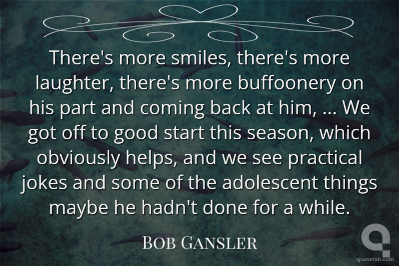 There's more smiles, there's more laughter, there's more buffoonery on his part and coming back at him, ... We got off to good start this season, which obviously helps, and we see practical jokes and some of the adolescent things maybe he hadn't done for a while.
