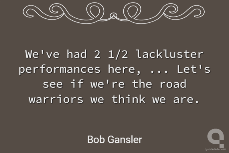 We've had 2 1/2 lackluster performances here, ... Let's see if we're the road warriors we think we are.