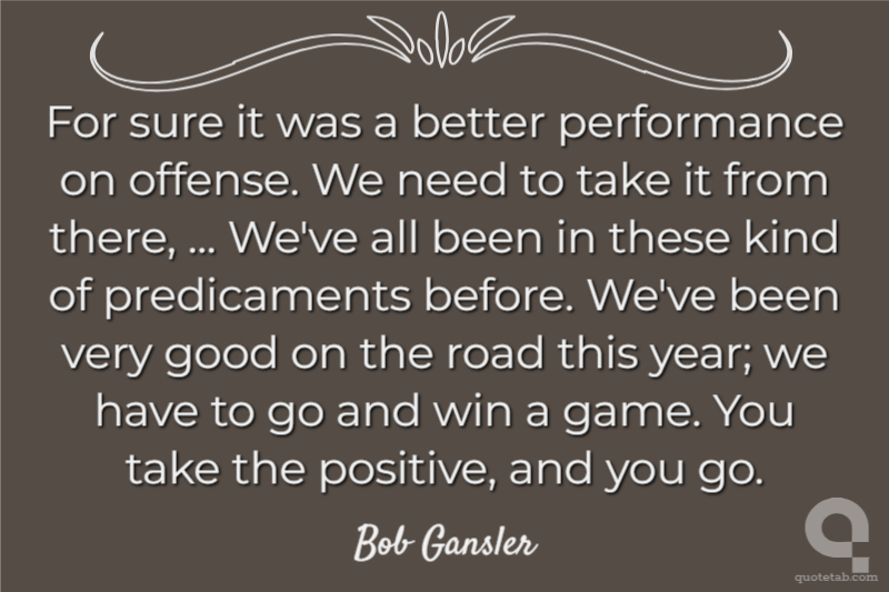 For sure it was a better performance on offense. We need to take it from there, ... We've all been in these kind of predicaments before. We've been very good on the road this year; we have to go and win a game. You take the positive, and you go.