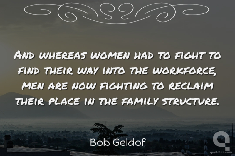And whereas women had to fight to find their way into the workforce, men are now fighting to reclaim their place in the family structure.