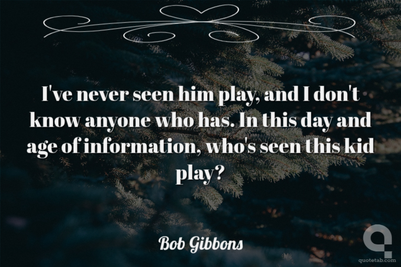 I've never seen him play, and I don't know anyone who has. In this day and age of information, who's seen this kid play?