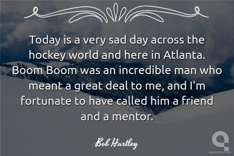 Today is a very sad day across the hockey world and here in Atlanta. Boom Boom was an incredible man who meant a great deal to me, and I'm fortunate to have called him a friend and a mentor.