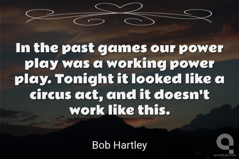 In the past games our power play was a working power play. Tonight it looked like a circus act, and it doesn't work like this.