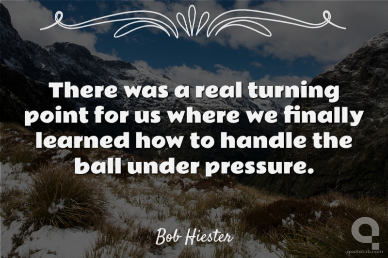 There was a real turning point for us where we finally learned how to handle the ball under pressure.