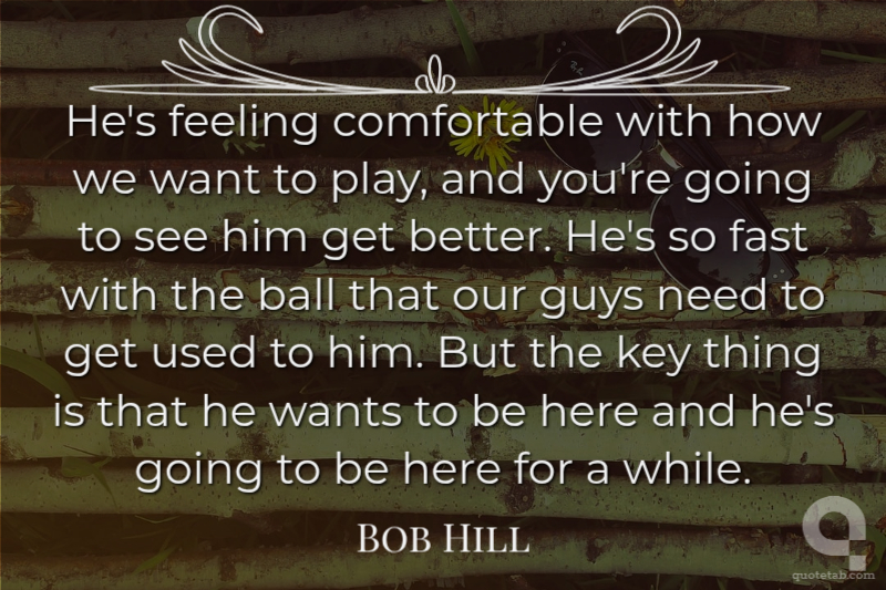 He's feeling comfortable with how we want to play, and you're going to see him get better. He's so fast with the ball that our guys need to get used to him. But the key thing is that he wants to be here and he's going to be here for a while.