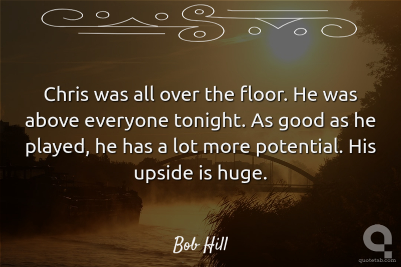 Chris was all over the floor. He was above everyone tonight. As good as he played, he has a lot more potential. His upside is huge.