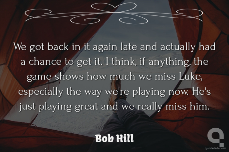 We got back in it again late and actually had a chance to get it. I think, if anything, the game shows how much we miss Luke, especially the way we're playing now. He's just playing great and we really miss him.