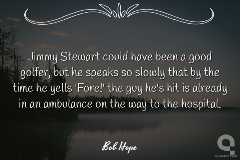 Jimmy Stewart could have been a good golfer, but he speaks so slowly that by the time he yells 'Fore!' the guy he's hit is already in an ambulance on the way to the hospital.