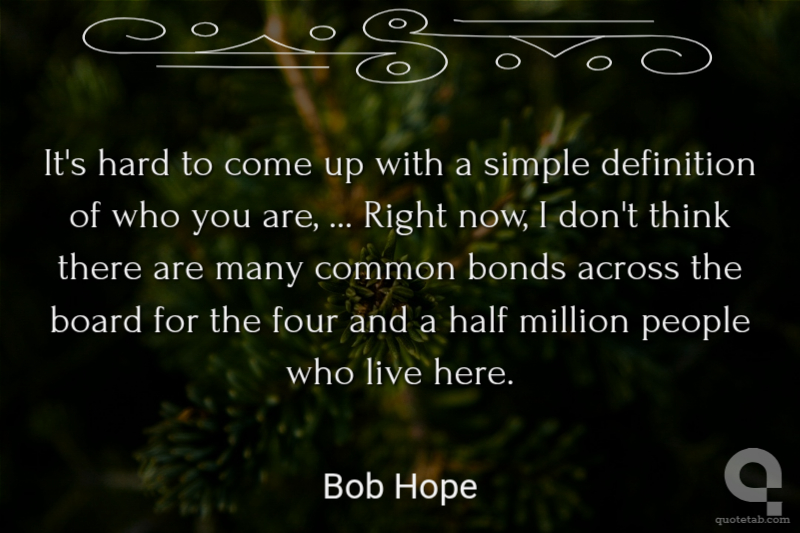 It's hard to come up with a simple definition of who you are, ... Right now, I don't think there are many common bonds across the board for the four and a half million people who live here.