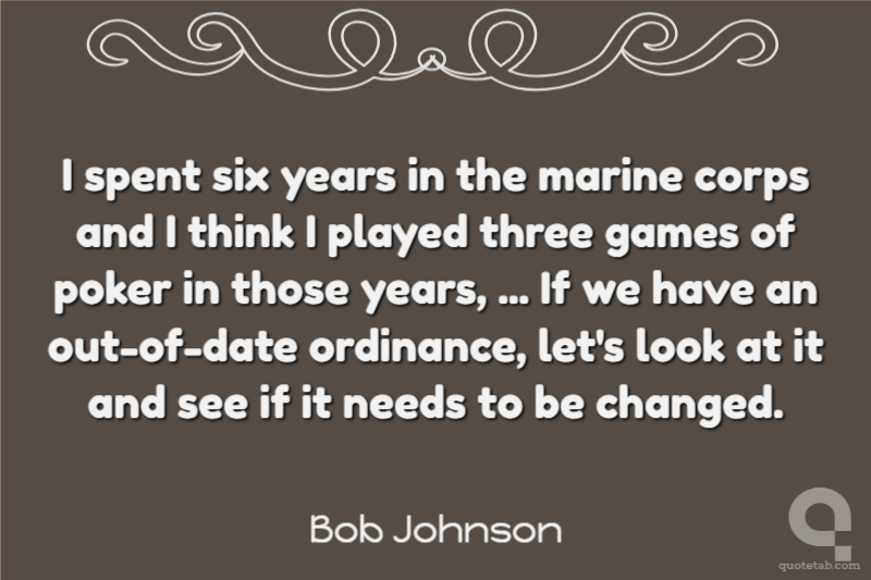 I spent six years in the marine corps and I think I played three games of poker in those years, ... If we have an out-of-date ordinance, let's look at it and see if it needs to be changed.