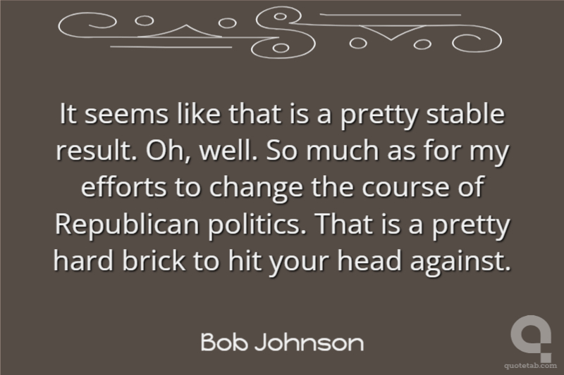 It seems like that is a pretty stable result. Oh, well. So much as for my efforts to change the course of Republican politics. That is a pretty hard brick to hit your head against.