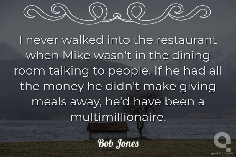 I never walked into the restaurant when Mike wasn't in the dining room talking to people. If he had all the money he didn't make giving meals away, he'd have been a multimillionaire.