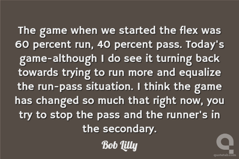 The game when we started the flex was 60 percent run, 40 percent pass. Today's game-although I do see it turning back towards trying to run more and equalize the run-pass situation. I think the game has changed so much that right now, you try to stop the pass and the runner's in the secondary.