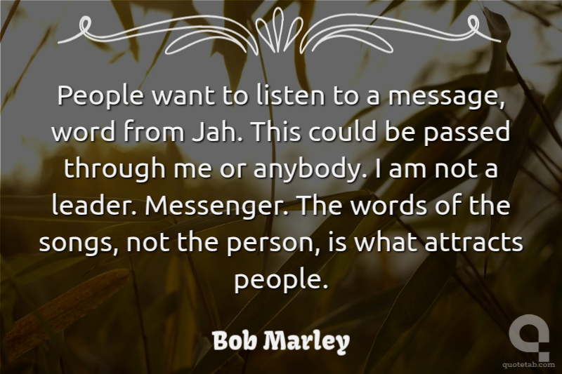 People want to listen to a message, word from Jah. This could be passed through me or anybody. I am not a leader. Messenger. The words of the songs, not the person, is what attracts people.