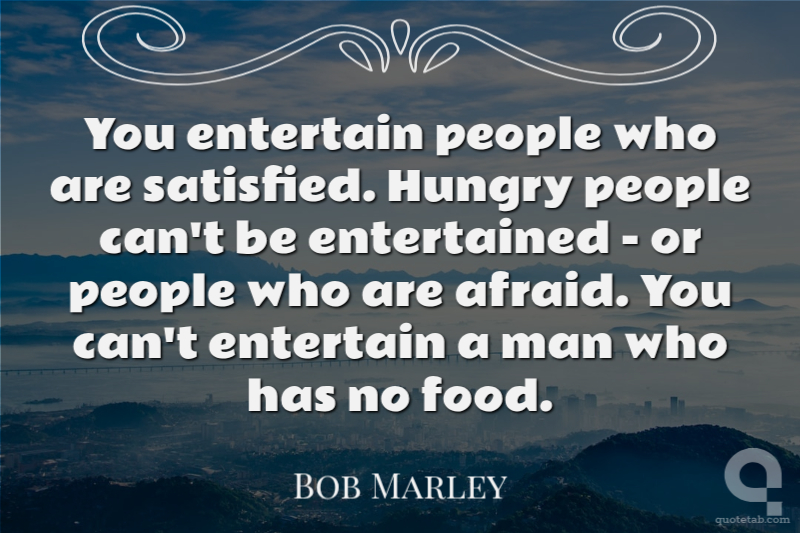 You entertain people who are satisfied. Hungry people can't be entertained - or people who are afraid. You can't entertain a man who has no food.