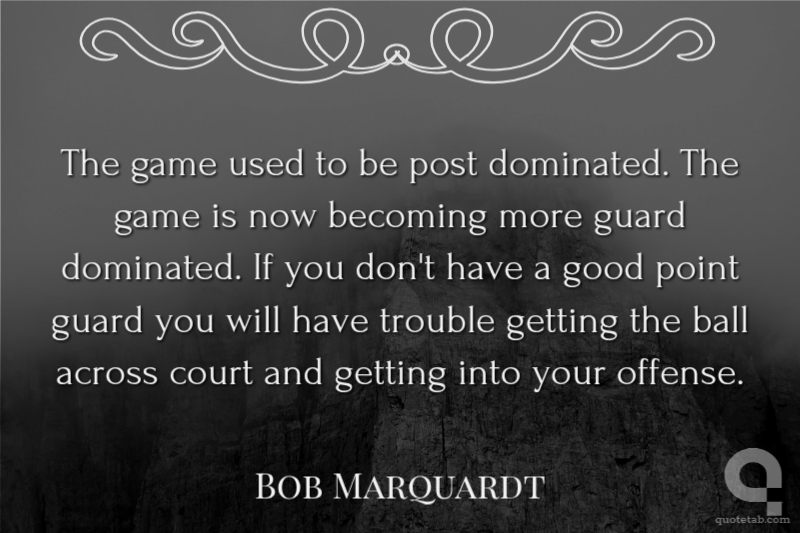 The game used to be post dominated. The game is now becoming more guard dominated. If you don't have a good point guard you will have trouble getting the ball across court and getting into your offense.