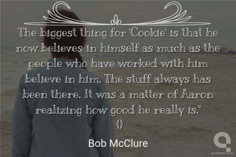 The biggest thing for 'Cookie' is that he now believes in himself as much as the people who have worked with him believe in him. The stuff always has been there. It was a matter of Aaron realizing how good he really is." ()