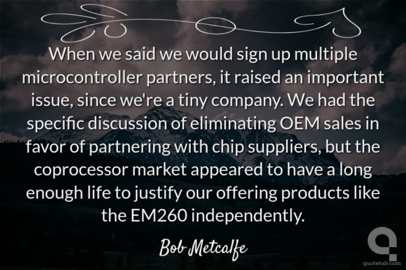 When we said we would sign up multiple microcontroller partners, it raised an important issue, since we're a tiny company. We had the specific discussion of eliminating OEM sales in favor of partnering with chip suppliers, but the coprocessor market appeared to have a long enough life to justify our offering products like the EM260 independently.
