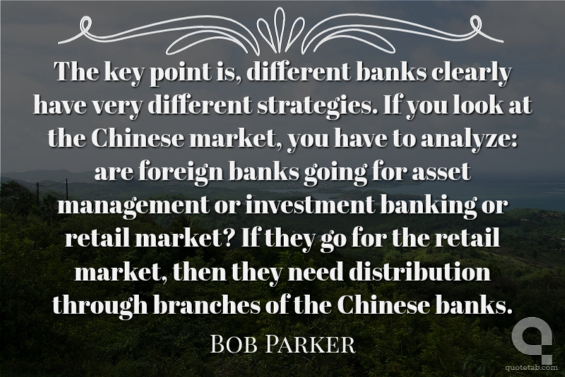 The key point is, different banks clearly have very different strategies. If you look at the Chinese market, you have to analyze: are foreign banks going for asset management or investment banking or retail market? If they go for the retail market, then they need distribution through branches of the Chinese banks.