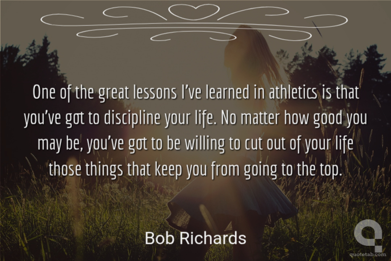 One of the great lessons I've learned in athletics is that you've got to discipline your life. No matter how good you may be, you've got to be willing to cut out of your life those things that keep you from going to the top.