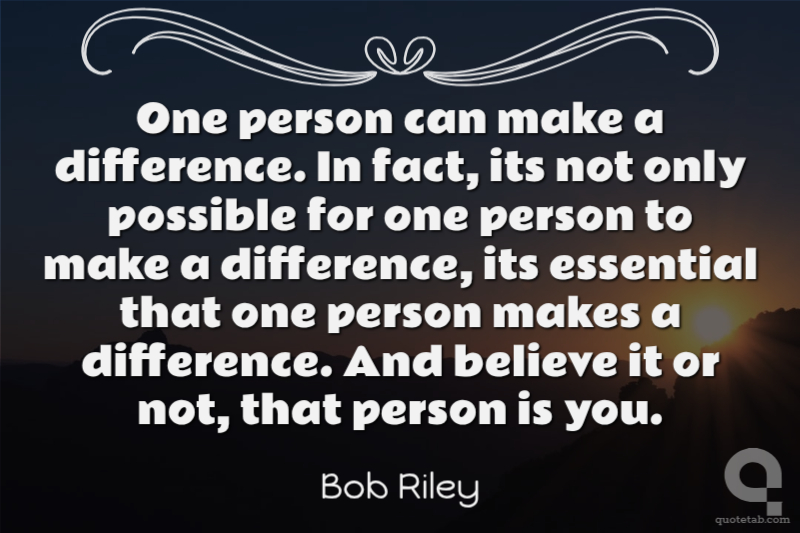 One person can make a difference. In fact, its not only possible for one person to make a difference, its essential that one person makes a difference. And believe it or not, that person is you.