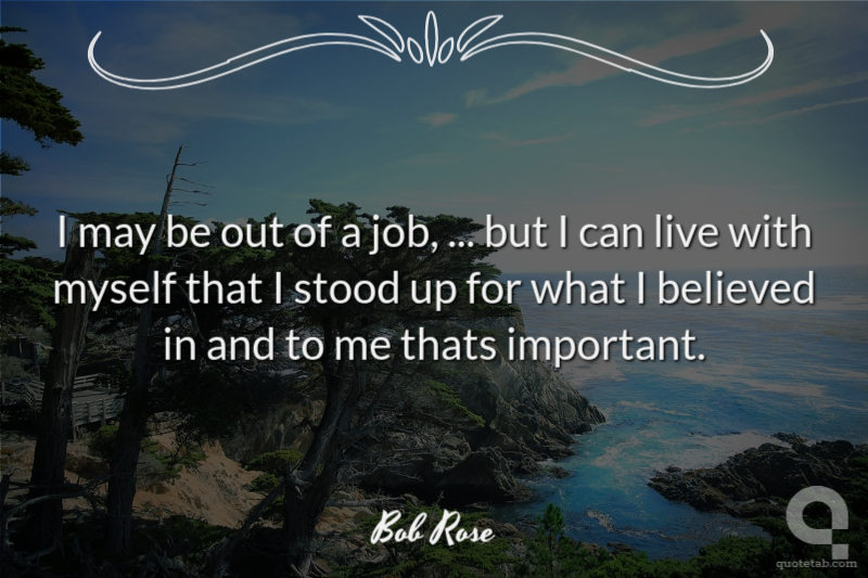 I may be out of a job, ... but I can live with myself that I stood up for what I believed in and to me thats important.