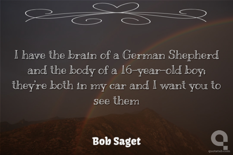 I have the brain of a German Shepherd and the body of a 16-year-old boy; they’re both in my car and I want you to see them