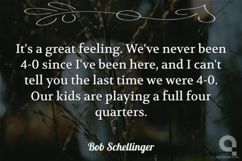 It's a great feeling. We've never been 4-0 since I've been here, and I can't tell you the last time we were 4-0. Our kids are playing a full four quarters.