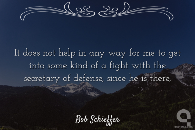 It does not help in any way for me to get into some kind of a fight with the secretary of defense, since he is there,